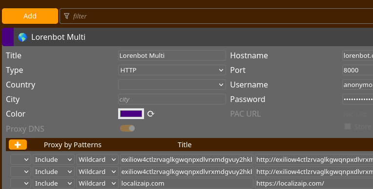A configuração é bem fluída, basta adicionar suas contas proxy (ou onion locais) criando assim um “setor” no FoxyProxy