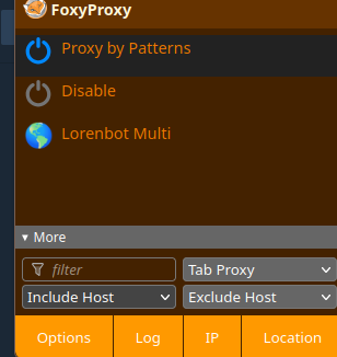 Se você preferir, quando estiver no site, pode clicar no icone do FoxyProxy na barra de navegação e adicionar em include host, selecionando o host que esse site vai ser proxado: